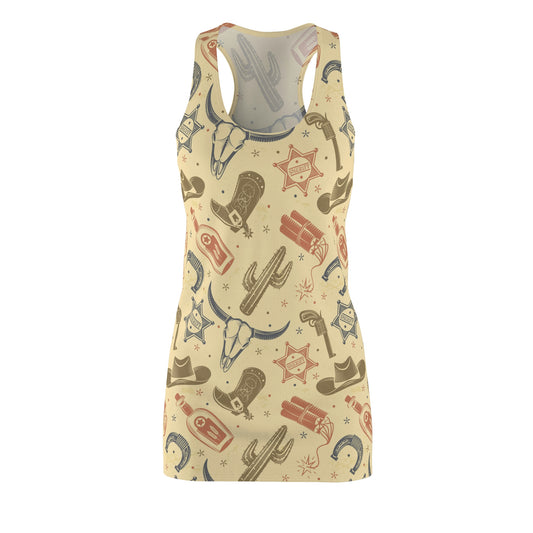 Western Pattern Women's Cut & Sew Racerback Dress