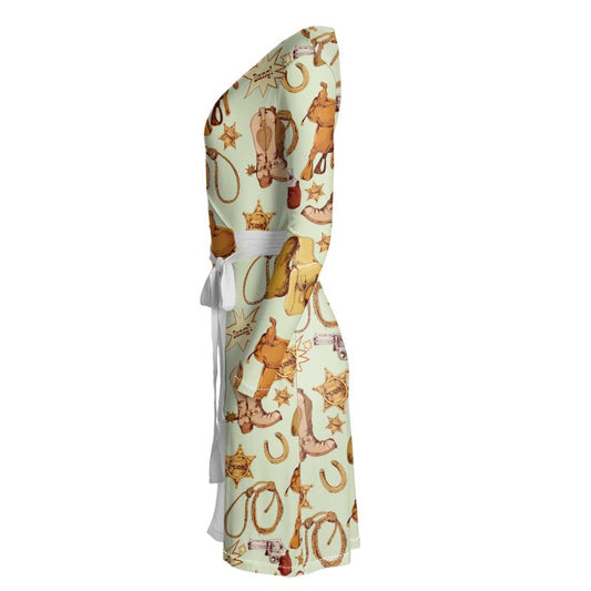 Cowboy Gear Wrap Dress White