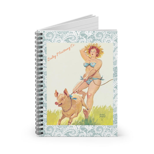 Chasin' Pigs "Hilda" Blue Lace Print Spiral Notebook - Ruled Line