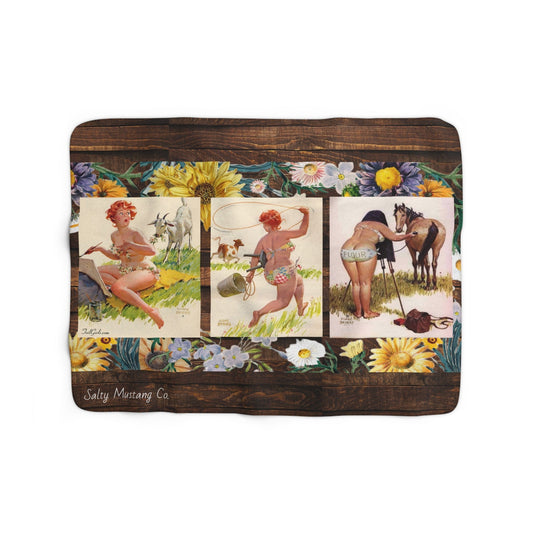 Hilda On The Farm Rustic Wood & Floral Sherpa Fleece Blanket