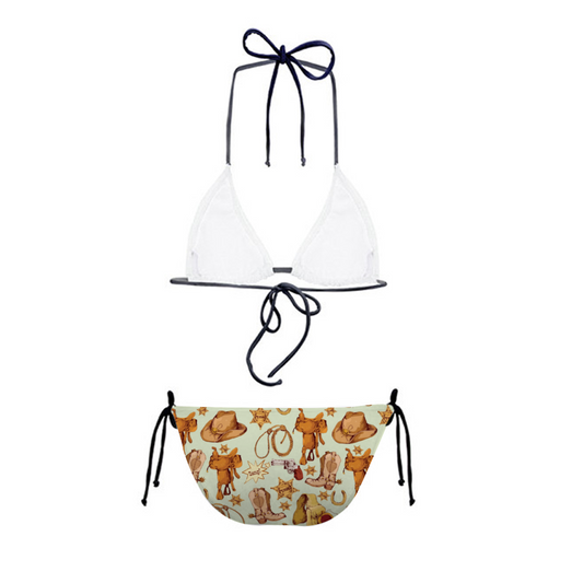 Cowboy Gear With Cowboy Rolling a Smoke Women's Bikini with Black Straps Two-piece swimsuit