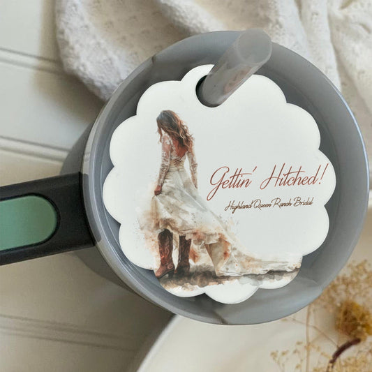 Gettin’ Hitched Highland Queen Ranch Bridal 40oz Tumbler Name Plate (Wavy Circle)