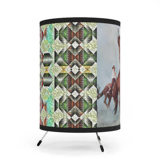 Vintage Cowgirl with Southwestern Pattern Tripod Lamp with High-Res Printed Shade, US\CA plug