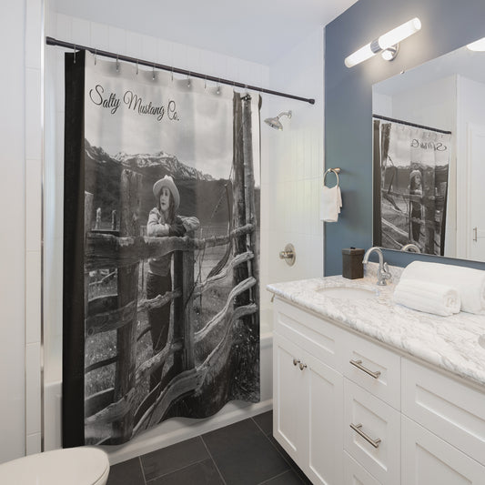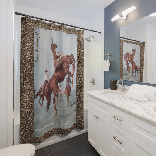 Vintage Rocky Mountain Cowgirl Shower Curtain
