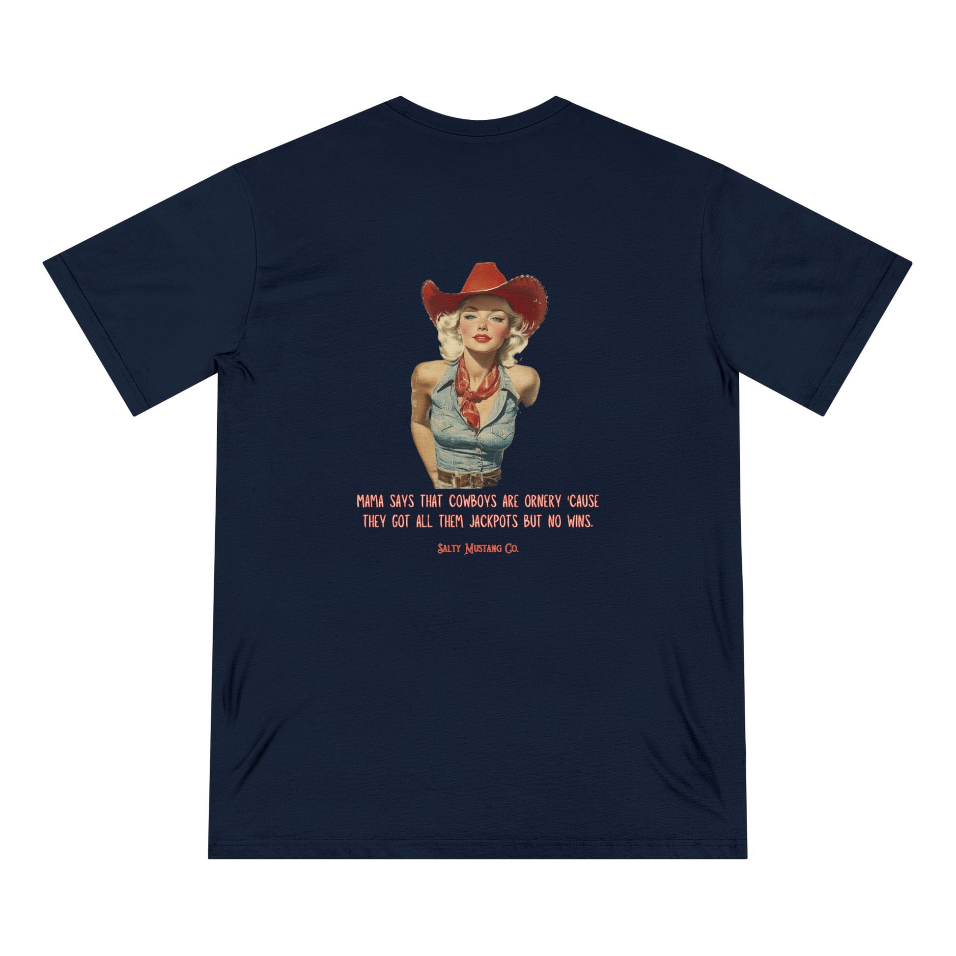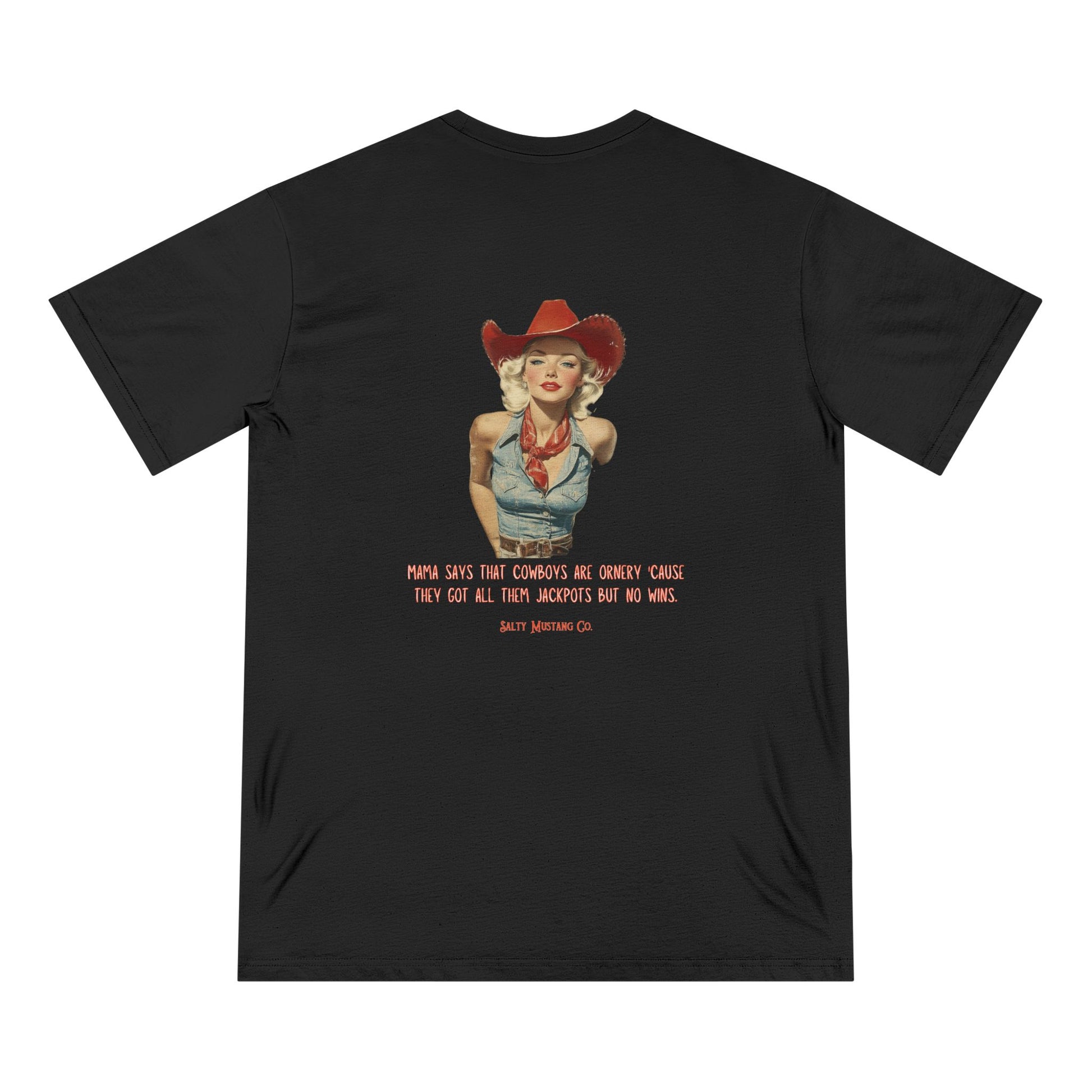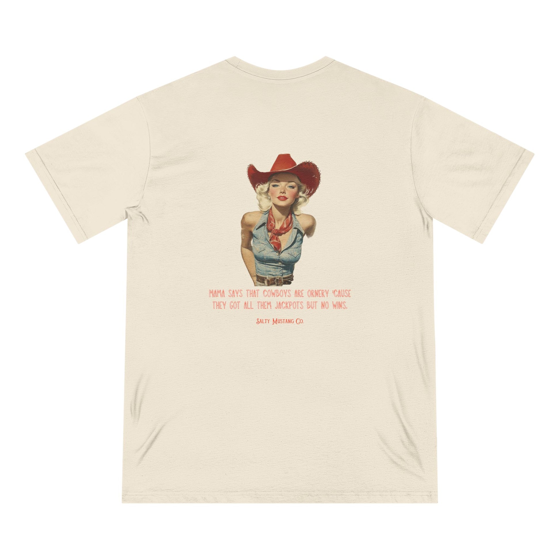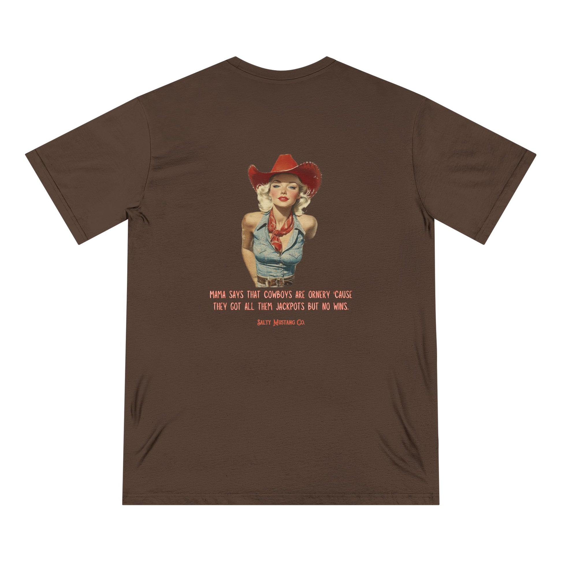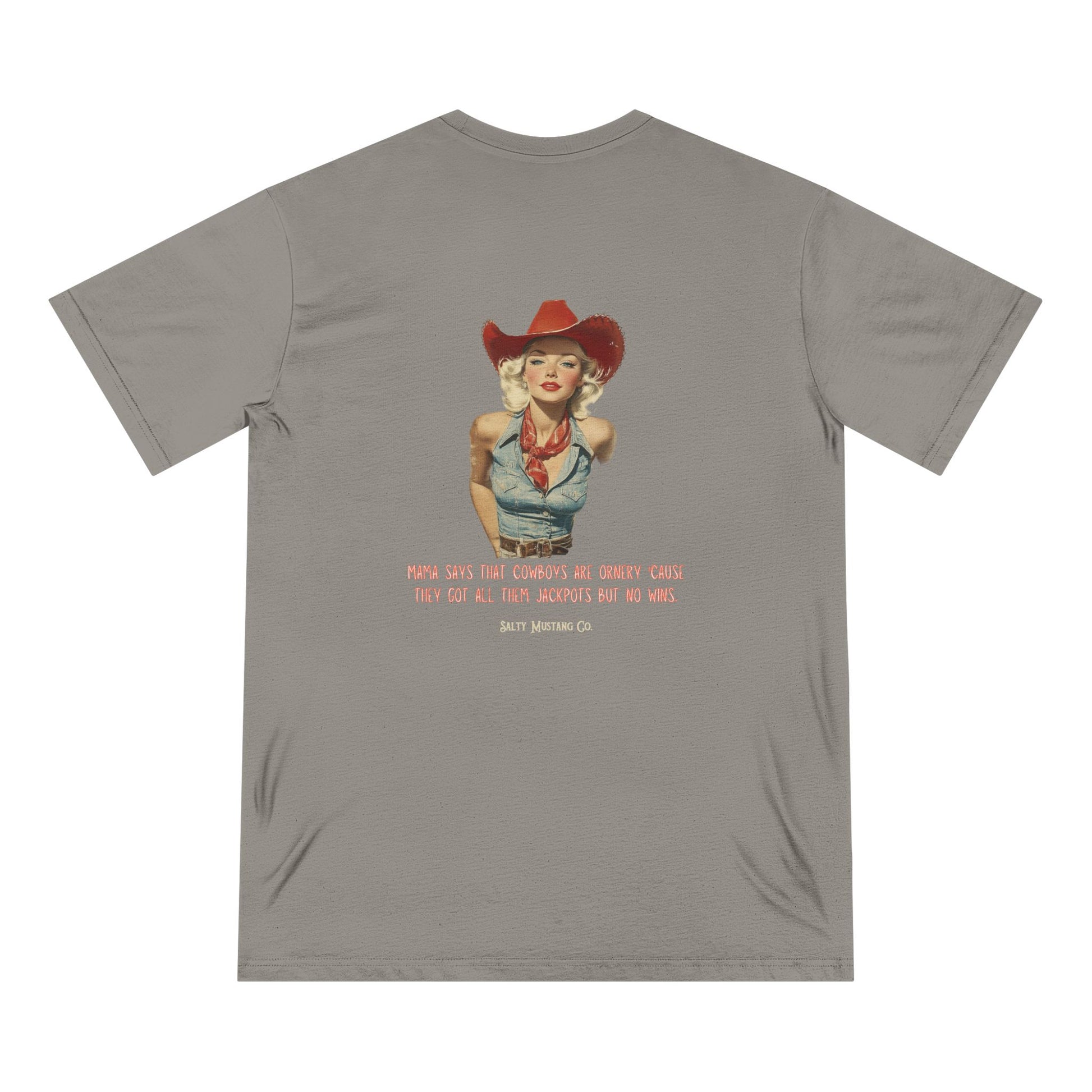 "Mama Says That Cowboys Are Ornery 'Cause They Got All Them Jackpots But No Wins" Vintage Cowgirl Organic Staple T-shirt