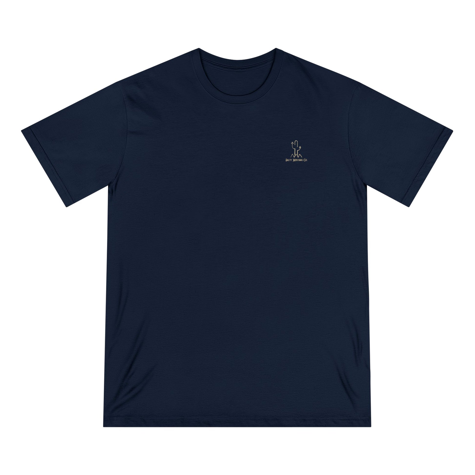 The organic staple t-shirt is a regular-fit, eco-friendly t-shirt with a crew neck. The fabric is 100% combed organic cotton. All materials are produced without the use of pesticides or herbicides. The neck is ribbed for improved durability. There is tape running along the shoulder line for improved fitting and reduced bunching. All hems are double needled. These organic t-shirts are preshrunk.