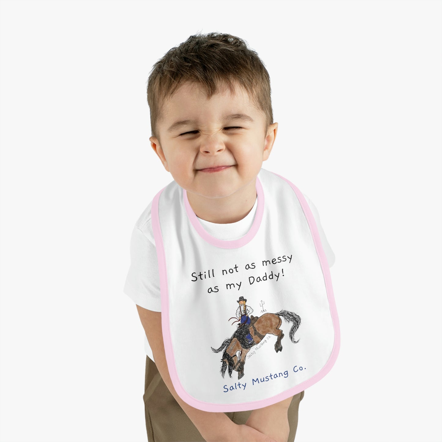 "Still not as messy as my Daddy!" Salty Mustang Co. Baby Contrast Trim Jersey Bib