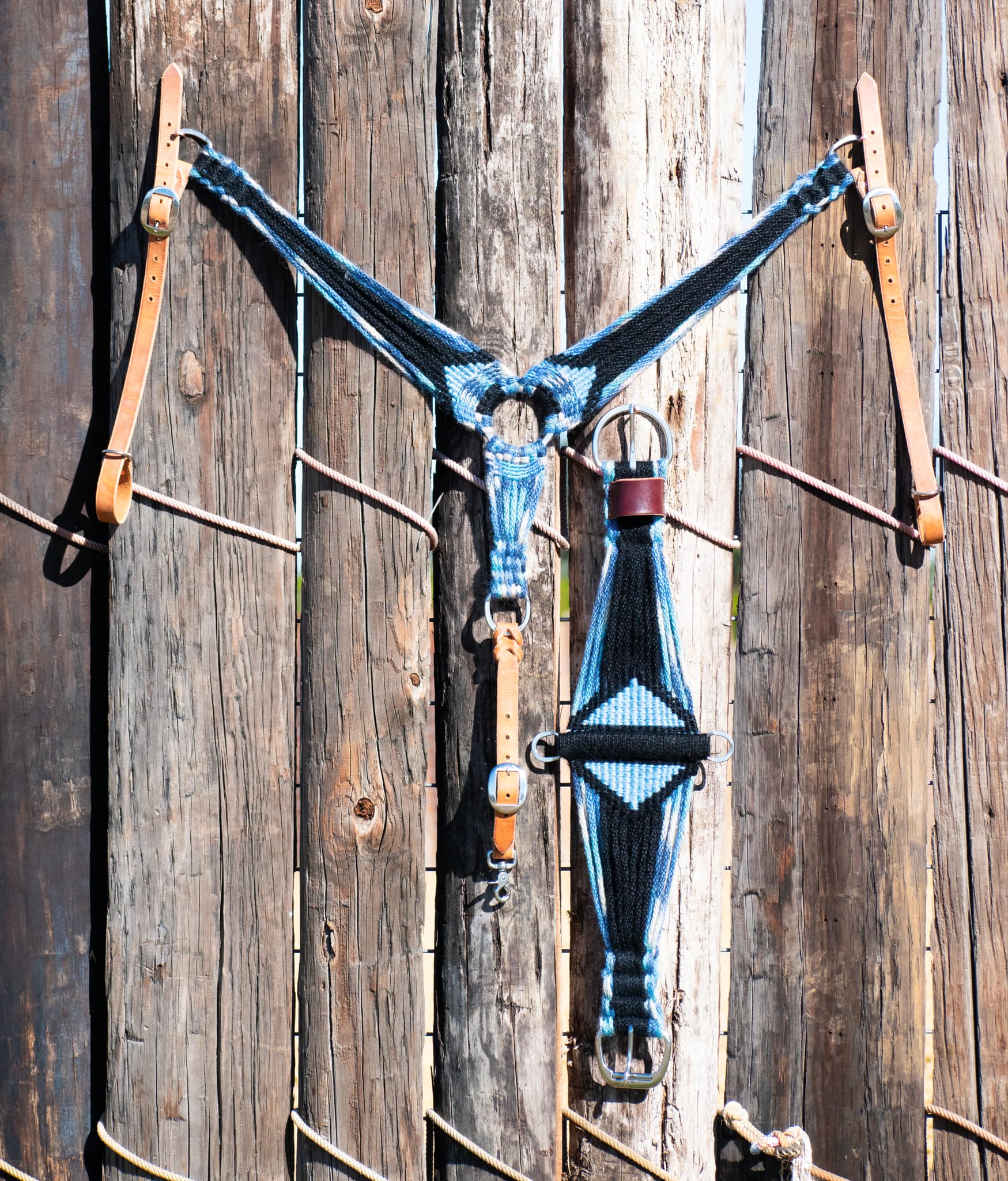 Wild Blue Yonder Handcrafted 100% Mohair Matching Cinch & Breast Collar Set